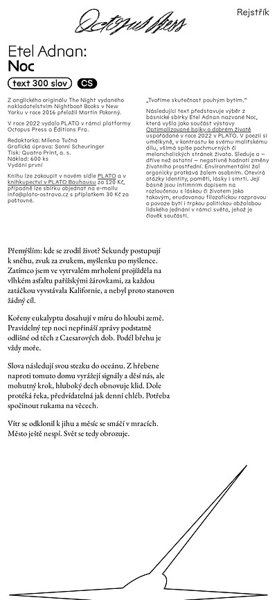 Umělci a umělkyně: Etel Adnan, Yalda Afsah, Krystian Truth Czaplicki, Oskar Dawicki, Habima Fuchs, Agata Ingarden, Sebastian Jefford, Christelle Kahla, Özgür Kar, Lars TCF Holdhus & Martin Kohout, Pavla Malinová, Zdenek Seydl, Franciszka Themerson, Jana Želibská