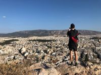 Po obědě jsme se vydali přes pahorek s Filoppapovým náhrobkem směrem do centra. Cestou jsme míjeli skupinky turistů. Vyšplhali jsme na vrcholek a zkoumali zase jednou Athény shora. Z kopce, ze kterého se v minulosti střílelo na Parthenón, jenž měl tehdy za osmanské říše ještě střechu a sloužil jako sklad střelného prachu a mešita, je dnes podle turistických průvodců jeden z nejlepších výhledů na Akropoli. Ani dnes nepřechází chuť ten „záměrně křivě pověšený obraz trůnící na své skále“ odstřelit.