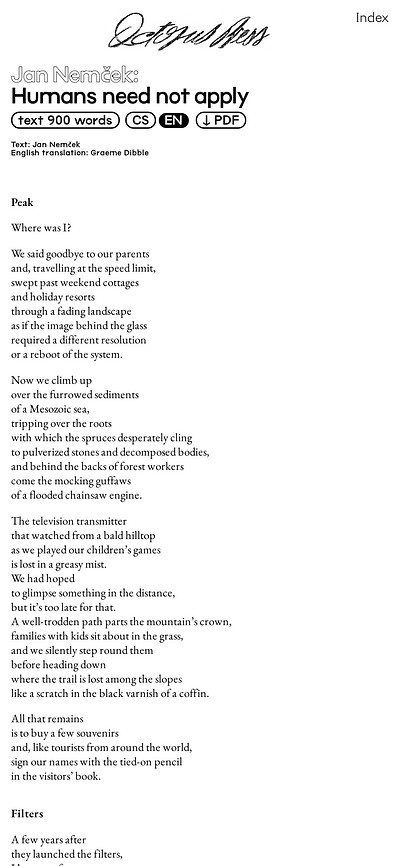 Monika Kubicová brought out the collection I Throw Up Air From Life in 2011 (Protimluv publishers). She lives in Ostrava. The author has chosen several newer texts for Octopus Press. The poem “But bad decisions…” is being published for the first time; the others are being brought out concurrently in issue 85 of the Vsetín-based literary journal Texts.