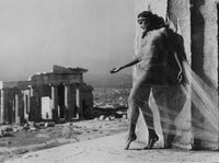 Writing from Greece, I am writing from a chthonic no-where where ruins lie (are situated or fallen) as language writes (the Greek word keimena means both lying and texts);33 from the place where the glorious ruins of classicism coexist with the bones in the mythical pit of Kaiadas (the Spartans‘ dump site for the crippled and the weak); from the place where Le Corbusier and Freud encountered the Acropolis with feelings of ‘a paralysing crush’ and ‘de-realisation’ respectively;34 from the place that Surrealist poet Nicolas Calas had to leave in order to find the exploding-fixed nature of ruins and understand how (in his own words) ‘art is a powder magazine, the Parthenon proves it!’;35 the place where poet Yorgos Makris issued his infamous proclamation for the destruction of Parthenon in 194436 as an artistic act of liberation from its entrenchment as petrified history; from the place where the legendary Octopus Press of anarchist writer Teos Romvos published a sardonic counter-touristic manifesto for the natural death of the Acropolis and the rise ‘of the vine of a new performance’ on its remains;37 the place where Robert Smithson‘s term of ‘a ruin in reverse’38 is a lived reality (precarious, undone, ever-under-construction), shared by now by many, here but also far beyond.