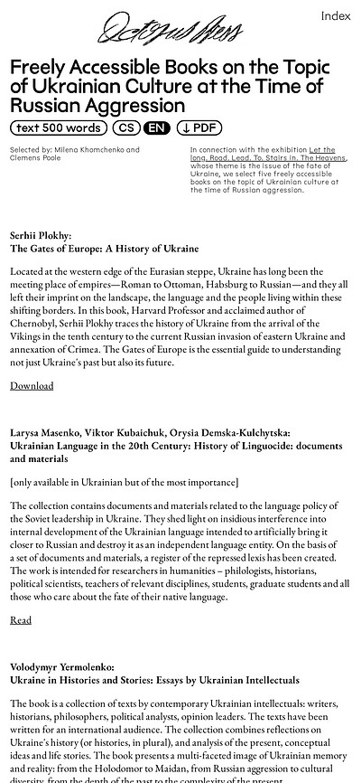 Our team was first approached in September 2022 about curating an exhibition of contemporary Ukrainian art at PLATO Ostrava. This proposition gave us pause. Following Russia’s full-scale invasion of Ukraine on February 24th, 2022, curatorial projects connected with Ukraine have had to cope with the double bind of addressing the constant developments of the ongoing extraterritorial state violence perpetrated by a neo-colonial aggressor, while also justifying the very validity of artistic, curatorial, and cultural practices in the midst of such a cataclysm. Exhibition topics that are staples of contemporary discourse, and which have produced some of the most valuable reference points for curatorial practice, quickly become trivial in the face of shelling, torture, mass deportation, and the innumerable other war crimes committed daily in Ukraine by the Russian state.